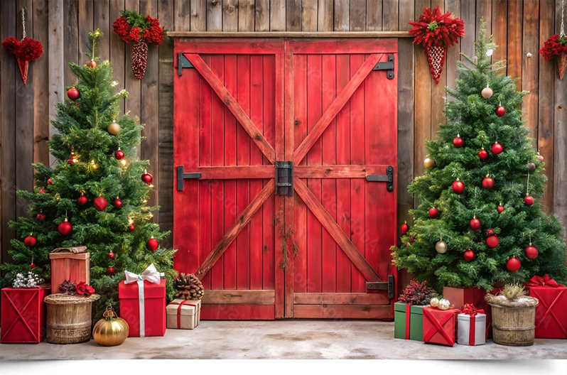 Вініловий фотофон Christmas Wooden Door with Wreath — це тепла та затишна зимова сцена, де на дерев’яних різдвяних дверях висить ошатний зелений вінок із червоною стрічкою. М’яке світло створює атмосферу свята, а фактура дерева додає кадрам глибини та природності.