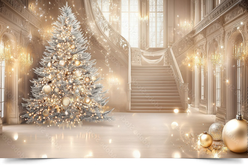 🎄 Вініловий фотофон “Grand Palace Christmas Tree” — це втілення святкової розкоші та зимової магії. Велична ялинка, прикрашена золотими іграшками, стрічками та сяючими гірляндами, створює атмосферу елегантного різдвяного балу. Такий фон додає відчуття тепла, урочистості й світла кожному кадру.