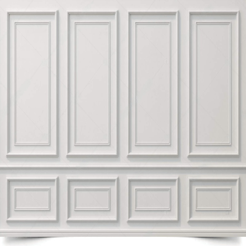 Цей вініловий фотофон імітує класичну стіну з декоративним оформленням. Дизайн відтворює стиль неокласицизм або французький шик, де стіна розділена на секції за допомогою рельєфних елементів – молдингів (боазері).